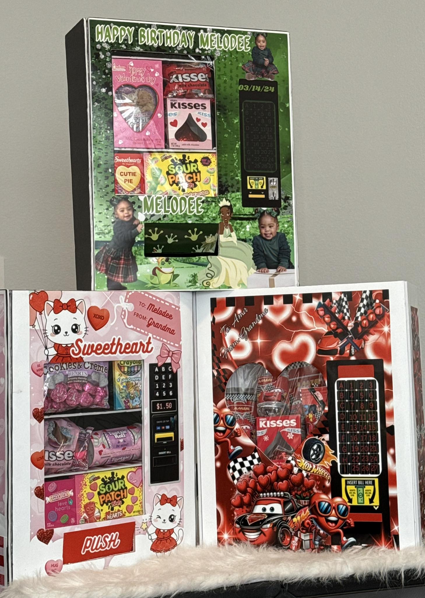 Vending machines designed for every occasion and recipient. Whether you're shopping for a child's birthday, valentines, Easter or a unique present for the hard-to-shop-for adult, these machines are a great gift. They are Stock with candy, and some activity books for kids, An ideal gift choice that brings joy across all age groups and settings.